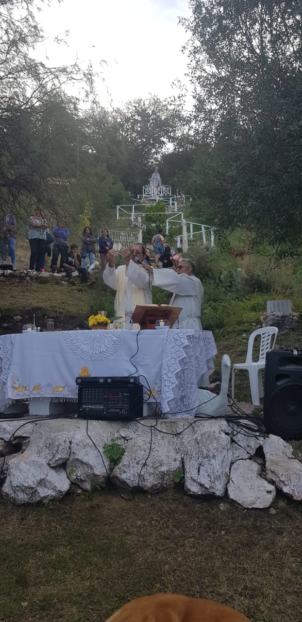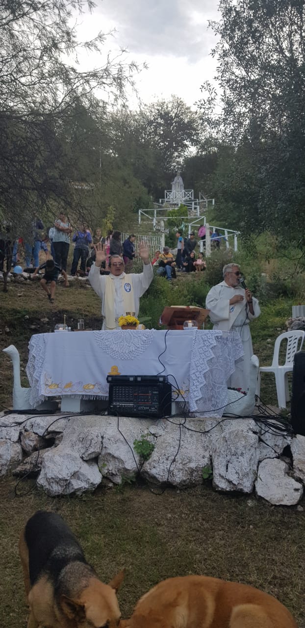 Este Sabado 13 de Mayo de 2023, comunidad de fieles, peregrinan a la gruta de Nuestra Señora de Fátima, ubicada en lo alto del cerro en el B°Las Lomitas, desde el Santuario Nuestra Señora del Tránsito y Santo Cura Brochero ; rezando el Rosario, cantando, haciendo memoria de las seis apariciones de la Virgen a los niños, Lucía, Francisco y Jacinta, a quienes, fervorosamente les pide