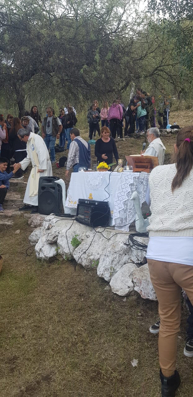 En la culminación con la Santa Misa, el Padre Carlos Fillol, nos invita a observar los signos, en la presencia de “ los niños», confiar en ellos, cuidarlos y en los jóvenes para acercarles siempre Nuestra invitación a “ confiar en la oración» .Hacia el final, un grupo de cinco laicos hicieron Su Consagración a La Madre, llevando el Compromiso de trabajar y Orar por todos….Los Peregrinos recibieron, al finalizar un rico chocolate con pan casero compartiendo el gozo de lo vivido.