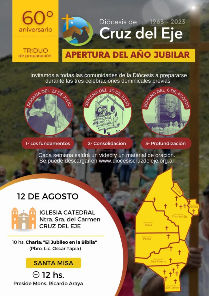 La Iglesia Diocesana de Cruz del Eje se prepara a celebrar el 60° Aniversario de su creación. Junto a nuestro Obispo Diocesano Mons. Ricardo Araya se prevé un programa de actividades pastorales de memoria agradecida de un camino evangelizador, de siembra y misión.