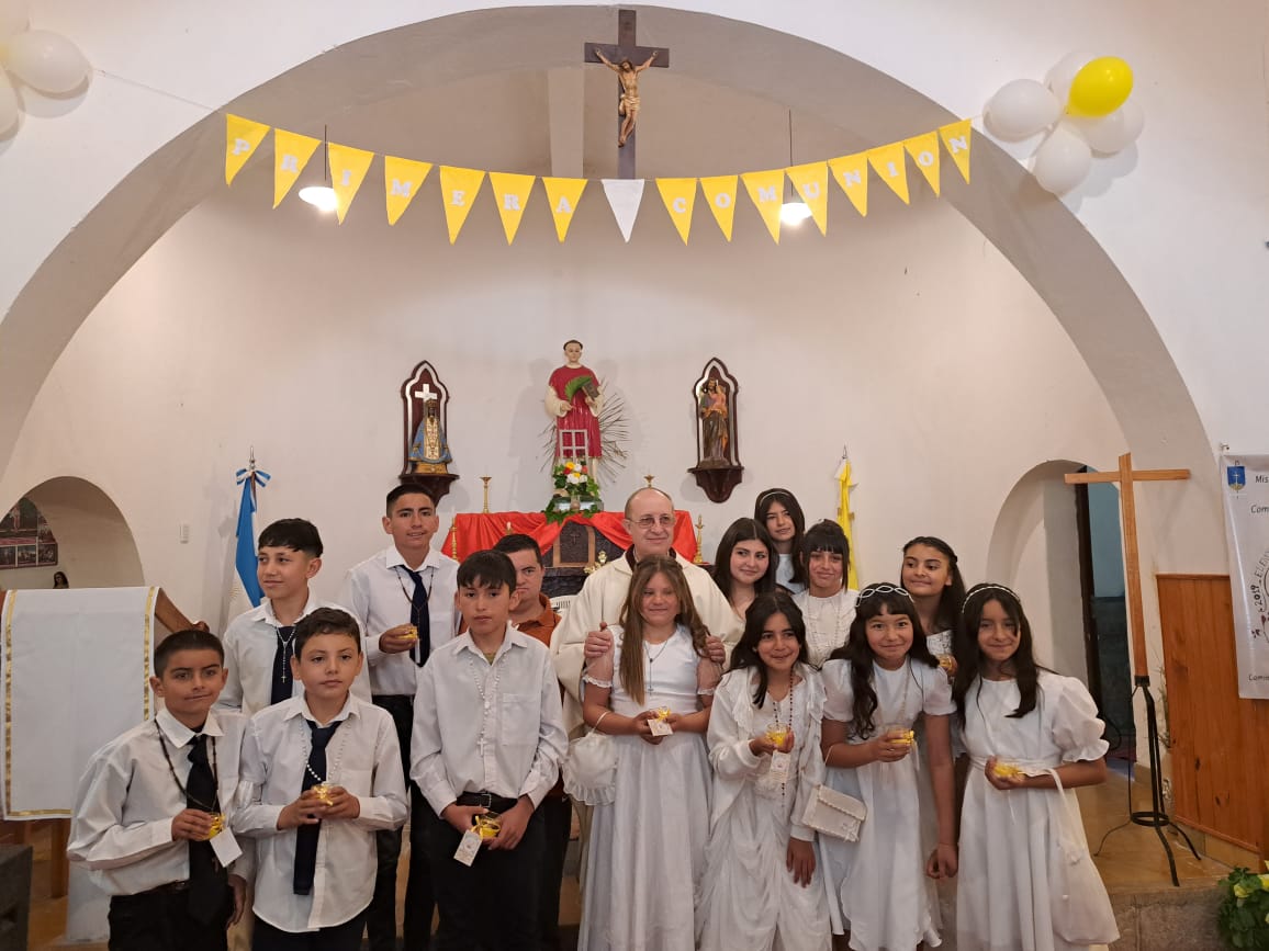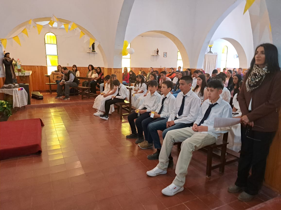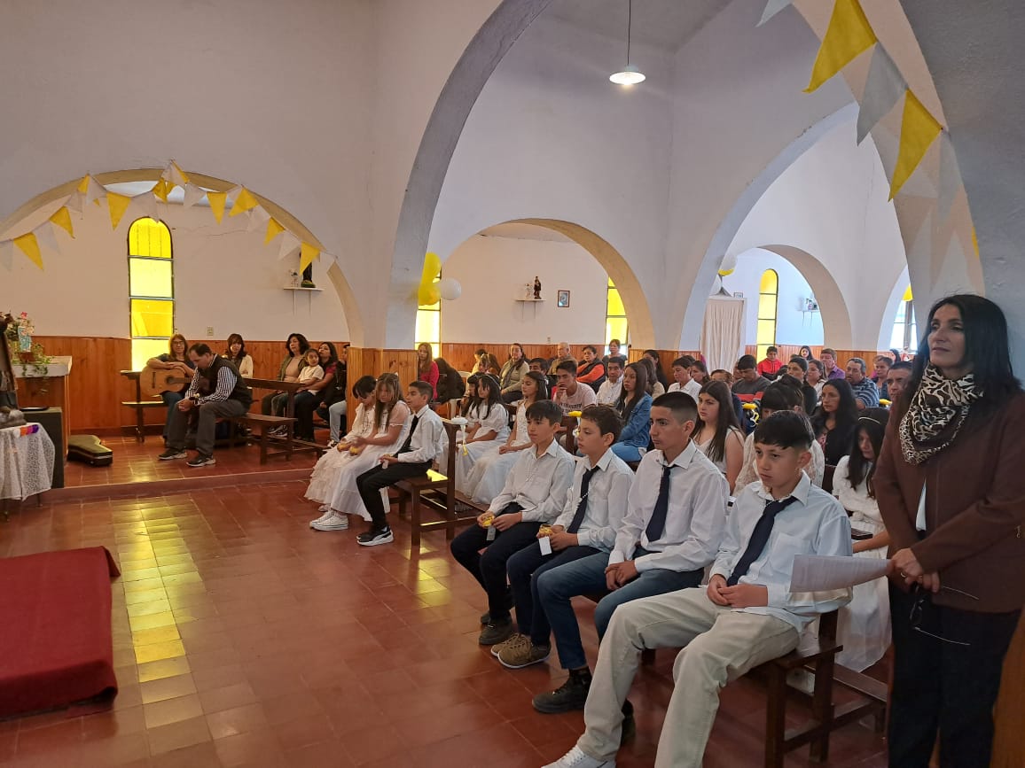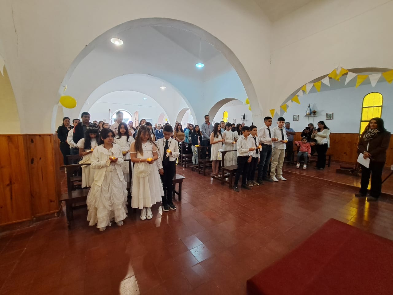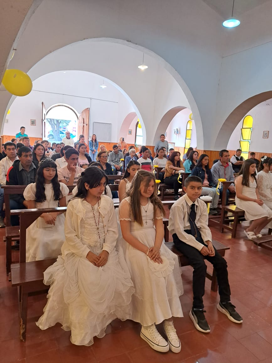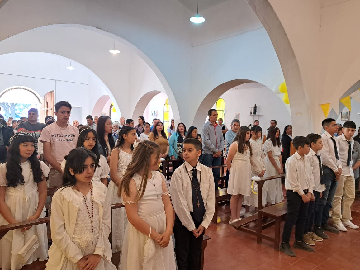 Se dio inicio haciendo una memoria historica y agradecida de los inicios de la construcción y momentos en que la participación del pueblo cuidó de su capilla. Al finalizar la Misa se compartió un brindis entre los presente junto a la alegría de los niños de recibir por ver primera la Comunión.