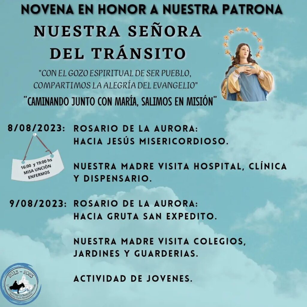 Novena y Fiesta Patronal a Nuestra Señora del Tránsito, Patrona de la Parroquia.